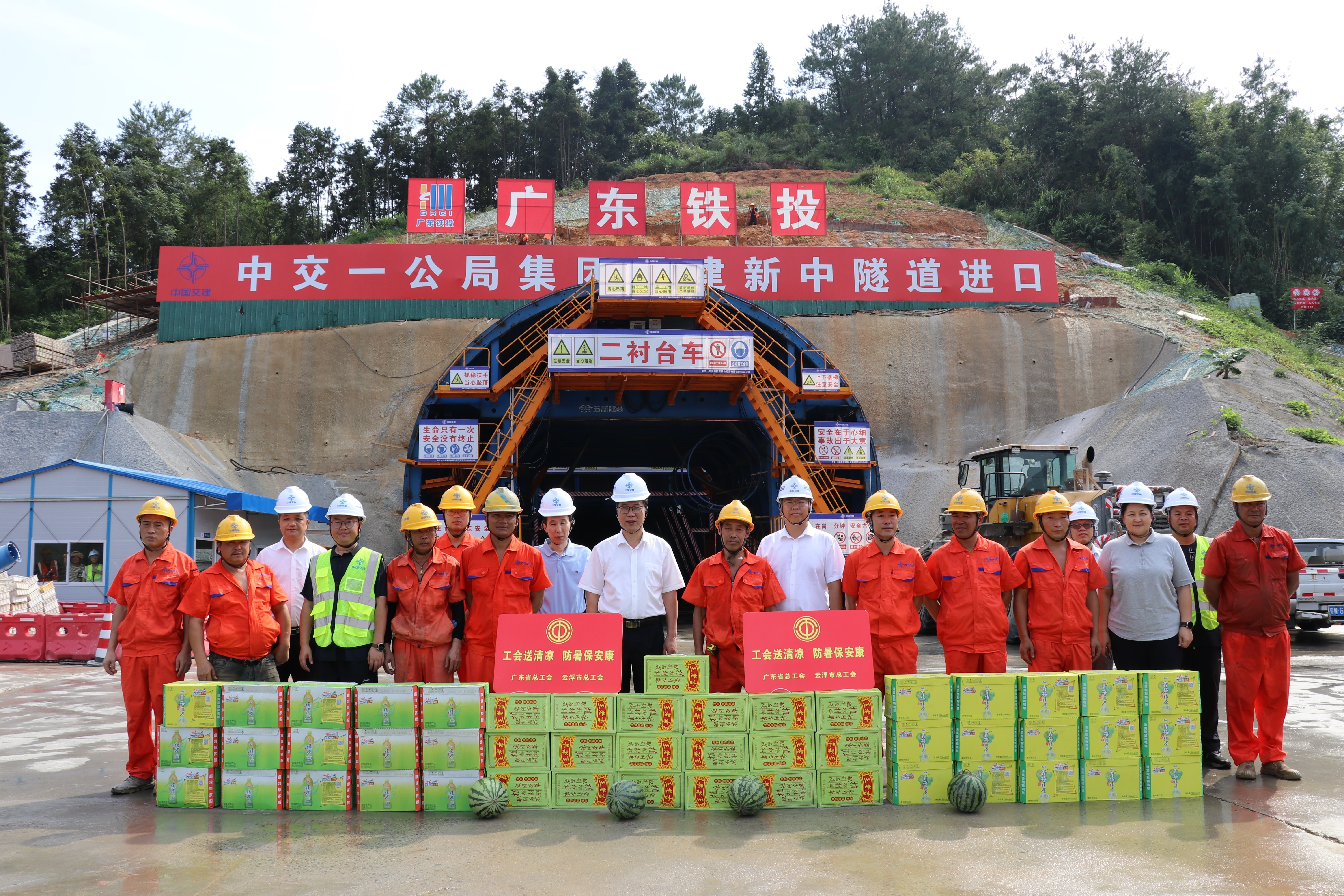为维护职工的劳动安全和健康权益,切实做好职工的防暑关爱工作,8月28日上午,广东省总工会联合云浮市总工会到深南高铁项目建设现场为劳动者“送清凉”。